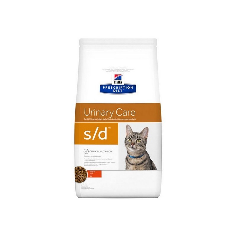 • Po podawaniu karmy s/d Feline przez 2 - 3 miesiące, nawrotom choroby dolnych dróg moczowych kotów towarzyszącej kamicy struwitowej, można zapobiec podając karmę Prescription Diet c/d Multicare Feline,  c/d Multicare Feline Reduced Calorie lub Feline w/d.